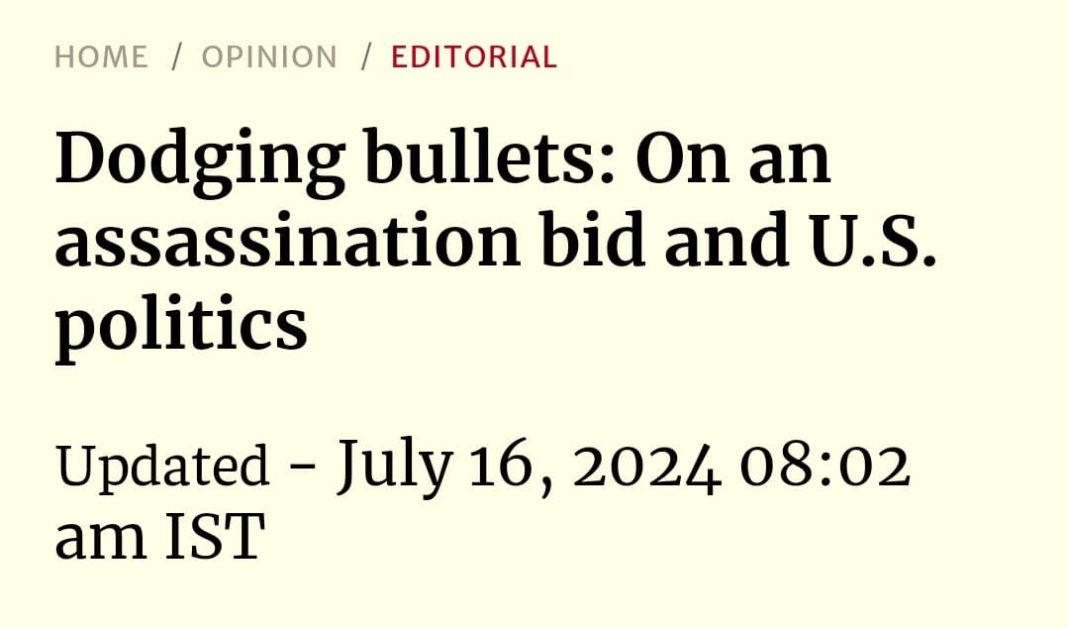 In a disturbing editorial titled ‘Dodging bullets: On an assassination bid and U.S. politics’, the Indian daily suggested that the attack on Donald Trump was somehow due to his own political rhetorics.