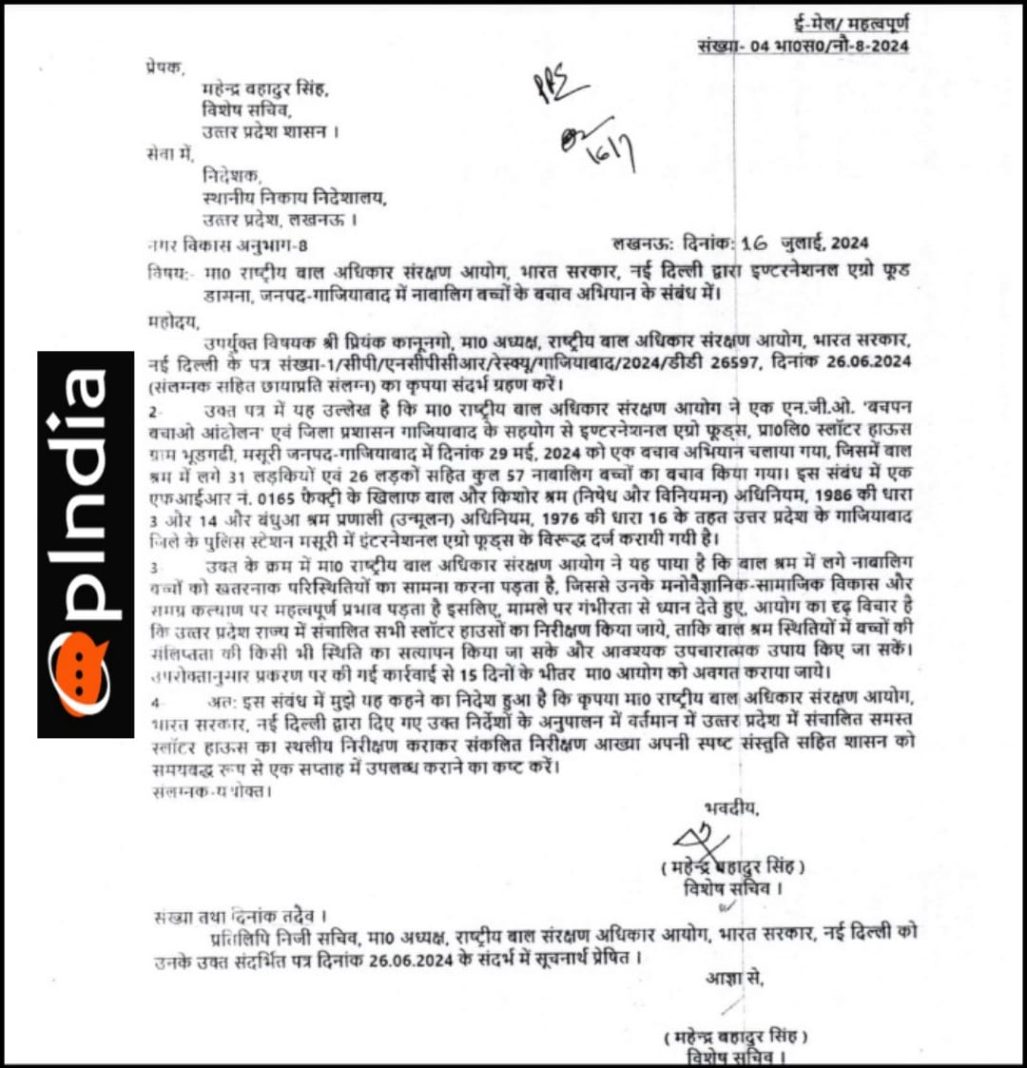 The order was issued after the National Commission for Protection of Child Rights (NCPCR) in a joint operation with the UP Police busted a child labour racket in Ghaziabad on May 29. 57 minor children, including 31 girls and 26 boys, including individuals with disabilities, were employed illegally as bonded labourers in a slaughterhouse owned by Yasin Qureshi in Ghaziabad.