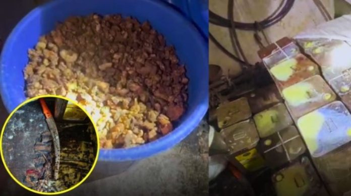 During the raid, authorities recovered two bovines, 41 containers of animal fat (each weighing 20 kg), teak logs, large ropes, weapons, and dry, rotten meat packed in tins.