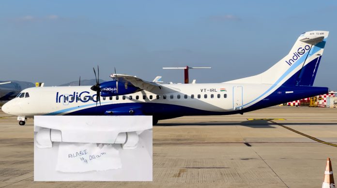 The handwritten note with the words ‘Blast 9.00 am’ scribbled on a piece of toilet paper was found stuck on the commode seat in the toilet in the aircraft, causing panic on the flight. As a result of the threat, the flight carrying 69 passengers and four crew members made an emergency landing at Nagpur Airport on Sunday morning.
