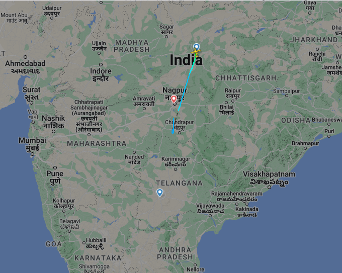 As per flight history recorded by flightradar24, the ATR 72-600 aircraft had crossed Nagpur when the threat was received, therefore it took a U-turn and landed at Nagpur airport.