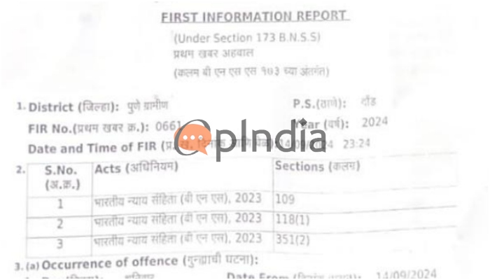 The accused has been booked under sections 109, 118(1), and 351(2) of the Bharatiya Nyay Samhita. Team OpIndia obtained the FIR copy of the incident. The incident is said to have happened on 14th September when the victim was going home on his bike after the Ganeshotsav event.