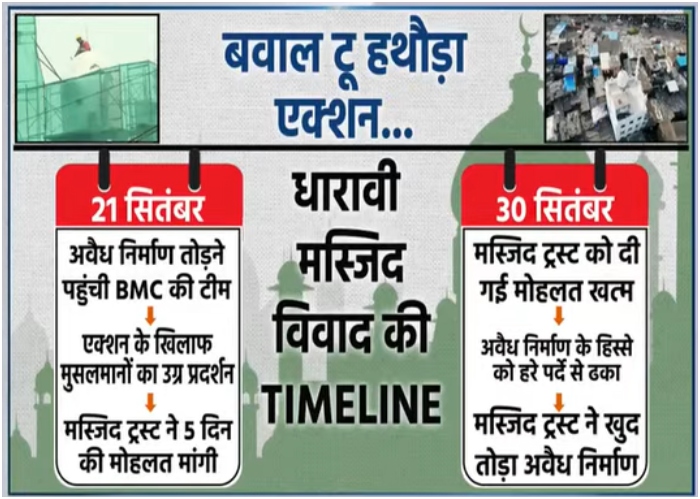 The large assembly also created significant traffic disruptions. However, the Dharavi police and traffic police were able to clear the roads by making loudspeaker announcements. The action of Monday began after the BMC official came over for inspection and sought the removal of illegal expansion. The Mosque earlier had promised that it would take down the illegal expansion, but eventually failed to. The demolition work began today, approximately five days after the deadline for the promise passed.