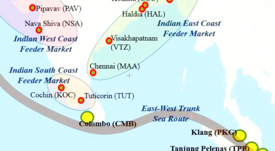At present, Colombo and Singapore, along with certain other important ports in the region, such as Dubai, serve as transhipment hubs for cargo bound for Indian ports. Nearly 25% of all containers coming from India are transshipped through foreign ports. Colombo, Singapore, and Klang (Malaysia), all foreign ports, handle approximately 80% of this.