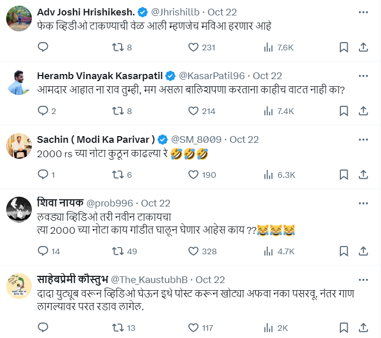 Several others mocked Pawar for desperately launching an attack on Mahayuti ahead of the state assembly elections. “From where did you get Rs 2000 notes?” asked one while the other one said that the way Pawar was sharing fake videos, was an indication that MVA was again about to lose the elections. The others meanwhile pointed out that Pawar had posted the video on X by downloading it from YouTube.