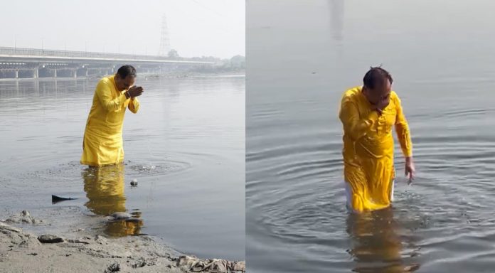 “Delhi BJP President Shri @Virend_Sachdeva today exposed the Rs 8500 crore Yamuna cleaning scam of the Delhi Government and took a dip in the Yamuna River and sought forgiveness for the mistakes of the Delhi Government,” Delhi BJP said in the tweet.