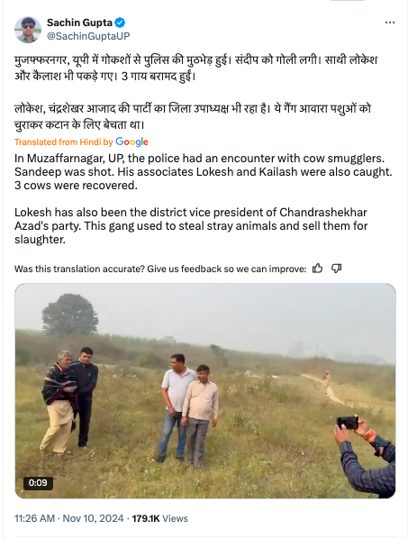 The police also arrested accused Lokesh Kumar, Kailash, Upesh Singh, and Deen Mohammad. Police seized three live cattle, a Max pickup truck, a motorcycle and a cartridge from the accused persons. According to journalist Sachin Gupta, one of the accused, Lokesh, had earlier served as a district vice president for Chandrashekhar Azad’s Azad Samaj Party.