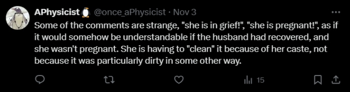 Another user further specifically added that people were just extending sympathy because the woman in the video was in grief or was pregnant, but the very primary reason why the hospital staff probably asked the woman to clean the blood was because of her lower caste.