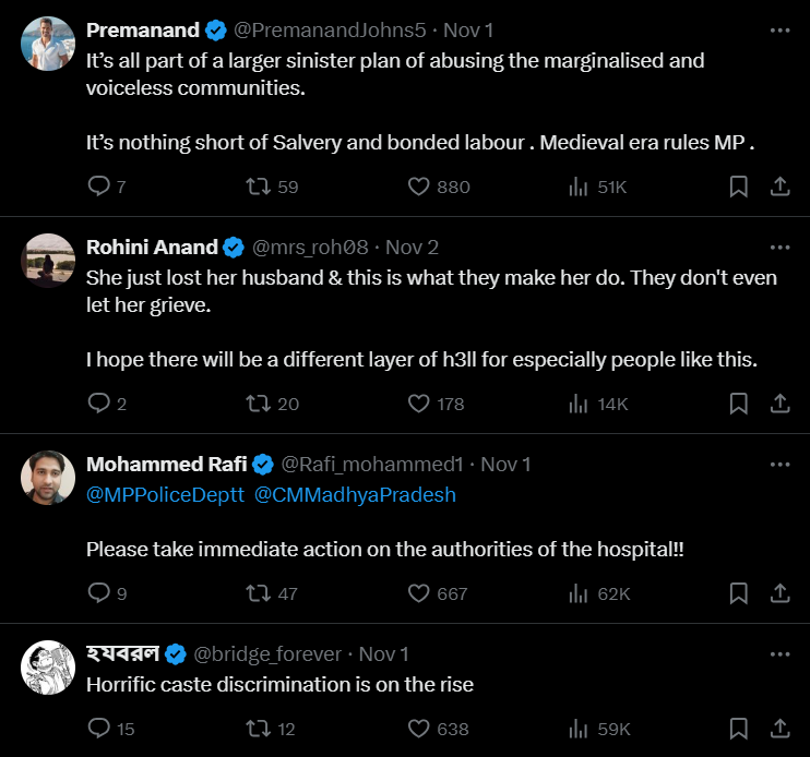 Meanwhile, on social media, people shared the video to claim that the woman was made to clean the hospital bed just because she belonged to the backward community. “It’s all part of a larger sinister plan of abusing the marginalized and voiceless communities. It’s nothing short of Salvery and bonded labour. Medieval era rules MP,” said one of the users while the other one said that caste discrimination was on the rise in Madhya Pradesh.