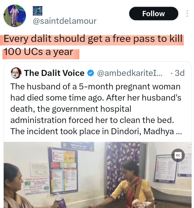 One of the users meanwhile called for genocide against the upper caste people saying that if this continues, every Dalit would want to have a right to straight away kill at least 100 people belonging to the upper caste.