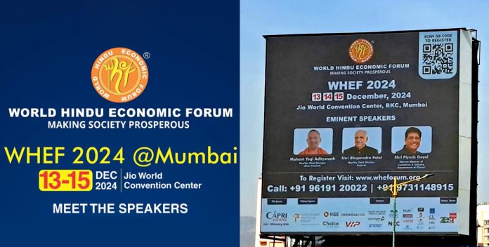 The World Hindu Economic Forum (WHEF) 2024 is scheduled to take place from 13th December to 15th December at the Jio World Convention Centre, BKC, Mumbai. This year’s theme is “Think in Future, for the Future”. According to the press release by WHEF, keynote speakers at the event include some of the most prominent names in the country including feature Uttar Pradesh Chief Minister Yogi Adityanath, Gujarat Chief Minister Bhupendra Patel, and Union Commerce and Industry Minister Piyush Goyal.