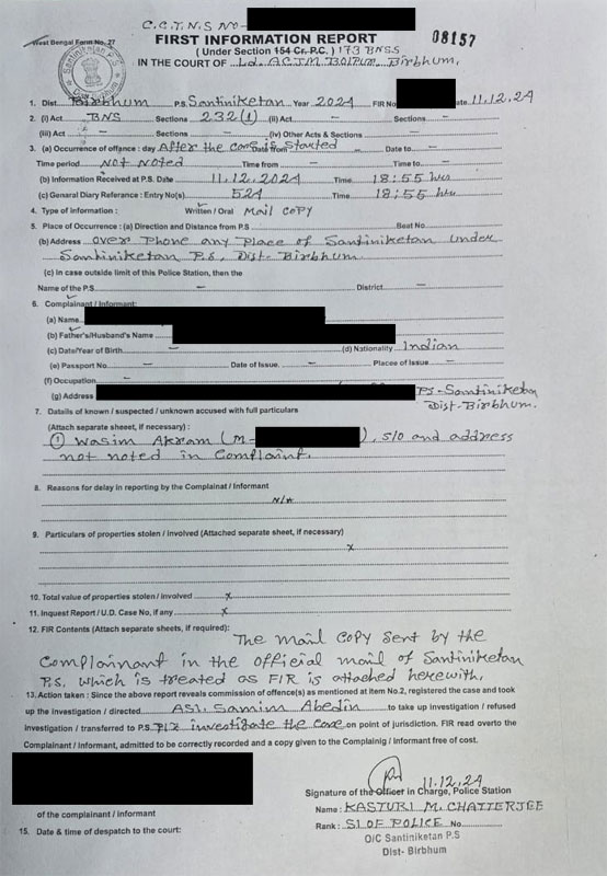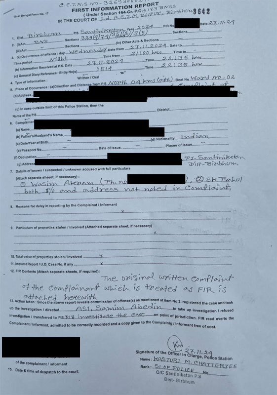 On 31 October 2024, the victim’s sister-in-law’s car (which is in the victim’s sister’s name) collided with a bike on which three individuals were riding. The incident took place near Sangeet Bhawan in Shantiniketan, West Bengal. The victim noted that CCTV footage of the incident corroborated the fact that it was a minor accident.