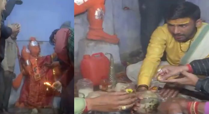 Aaarti was performed on Sunday morning at the recently reopened Lord Shiva and Hanuman temple in Sambhal.