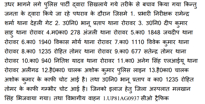 OpIndia has obtained an exclusive FIR copy of the incident in which it has been mentioned that around 13 police officers who dealt with the stone pelting have been severely injured. The injured police personnel have been identified as Ramendra Sharma, Bhanu Pratap, Deep Kumar Sahu, Anjal, Jaydeep, Vikas Morya, Vivek Kumar, Rohit Tomar, Satendra Tomar, Nitish Yadav, Aneg Singh, and Ashok Kumar.