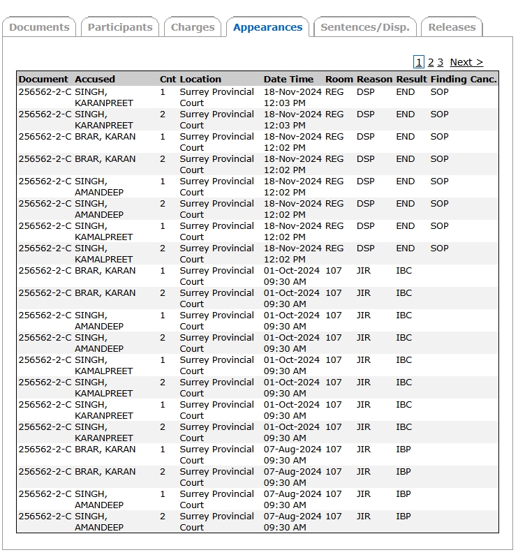 The four accused arrested on the charges of murdering Nijjar are Karanpreet Singh, Karan Brar, Amandeep Singh, and Kamalpreet Singh, all of Indian origin. The court records, posted on ? by user Brattani, show that the four accused were released on SOP on 18 November 2024. According to Canadian govt definitions, SOP stands for Stay of Proceedings directed by the Crown. This means the case against the four accused has been stayed on an order by the govt.