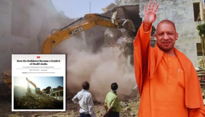 The article authored by Ambreen Agha then discusses how bulldozer action first gained popularity in Uttar Pradesh under the leadership of Chief Minister Yogi Adityanath. However, the author argues that CM Yogi has regularly ordered the ‘extrajudicial’ use of bulldozers against houses, businesses, properties, and places of worship of Muslims accused of criminal activities or ‘protests’ against the government. It further lamented that CM Yogi’s “bulldozer model” was replicated in other BJP-ruled states including Assam, Gujarat, Haryana, Madhya Pradesh, and Rajasthan and Prime Minister Narendra Modi also endorsed bulldozer action.