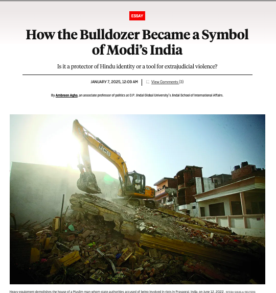 “India’s diversity is reduced to a religious binary, with Muslims depicted as a group that poses a threat and needs to be disciplined. The bulldozer enacts this discipline,” the Foreign Policy article reads.