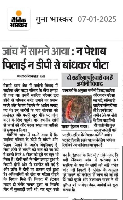 He also said that his nephew, Indrabhan was brutally assaulted and injured in the event. The Yadav family claims that the Sirsi police registered a cross-case against Indrabhan and three others under political pressure. “The land dispute is currently being adjudicated in court, and a stay order has been issued in their favor. A copy of the stay order was reportedly provided to the Tehsildar and the police station in charge, but the officials allegedly ignored it,” they added.