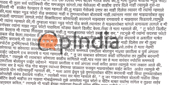 She added that after this, the accused messaged her and apologized for his behavior. He made the girl believe that he was her best friend and that she should not mention about his behavior anywhere. Later he also lured her saying that he would help her excel in sports if she cooperated with him. Following this he forcefully kept on calling her into the sports room where he would touch her inappropriately.