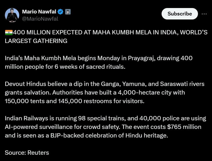 This blatant, political misrepresentation of the Maha Kumbh Mela may have contributed to Mario Nawfal’s distorted understanding of the Hindu festival.