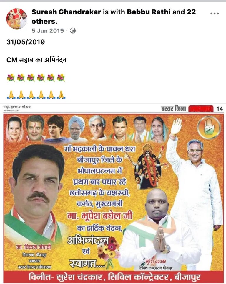 Media downplays Suresh Chandrakar’s connection to Congress