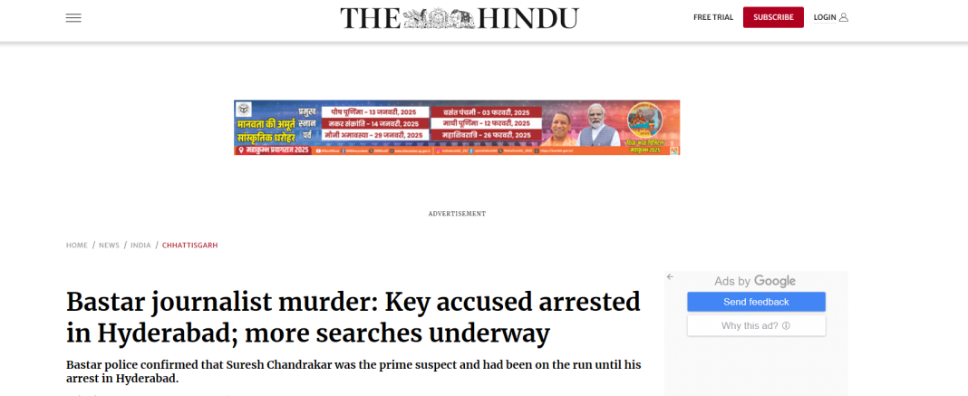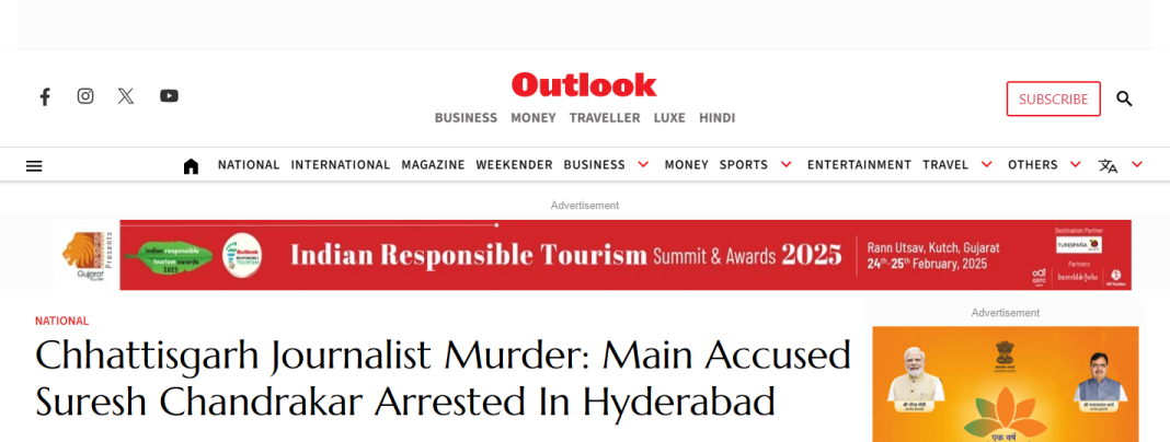 After his elder brother Yukesh Chandrakar raised the alarm, police discovered his body in a septic tank in the compound of Congress leader Suresh Chandrakar’s residential premises in Chhatanpara Basti of Bijapur. The tank had been freshly sealed with a concrete slab. The authorities suspect his murder is linked to this expose.