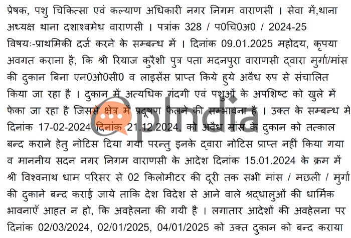 One of the complaints filed against Riaz has been exclusively obtained by OpIndia. Apart from the illegal sale of meat, the complaint highlights concerns regarding the unsanitary conditions of the shop, and the open sale of food posing a threat of infectious diseases.