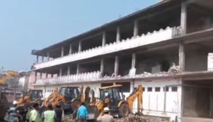 In Uttar Pradesh’s Kushinagar district, an illegally constructed mosque Madani Masjid was demolished by the administration on 9th February. The bulldozer action came after it was found that the mosque’s map was not approved and some part of it was built by occupying the land of the police station and municipality.