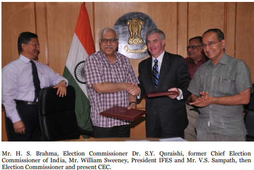 In May 2012, the Election Commission of India (ECI) signed a Memorandum of Understanding (MoU) with the International Foundation for Electoral Systems (IFES) in New Delhi to develop and strengthen democratic institutions and electoral processes. According to the then-issued press release, the MoU aimed to facilitate knowledge exchange, joint training programmes, research, and capacity-building initiatives through ECI’s India International Institute of Democracy and Election Management (IIIDEM). The agreement was signed by SY Quraishi, the then Chief Election Commissioner of India, and William Sweeney, President and CEO of IFES.