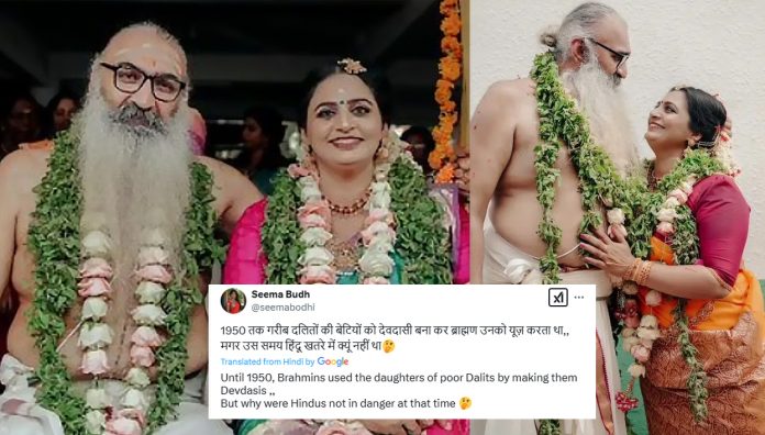 X user Seema Budh posted the video saying, “Until 1950, Brahmins used the daughters of poor Dalits by making them Devadasis. But why were Hindus not in danger at that time.”