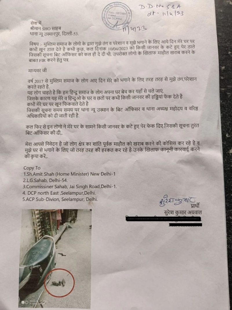Hindus say that it has become difficult for them to live around the mosque. Suresh Kumar Agarwal had complained to the New Usmanpur police station in the year 2023. He had written in the complaint, “Since the year 2017, people of the Muslim community have been pouring blood or something else at my house every day to drive me away. On April 10, 2023, the severed leg of an animal was thrown in front of my house.”