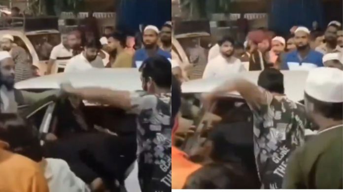 A video of the incident has been going viral on social media showing a mob surrounding the car and attacking the people inside the vehicle.