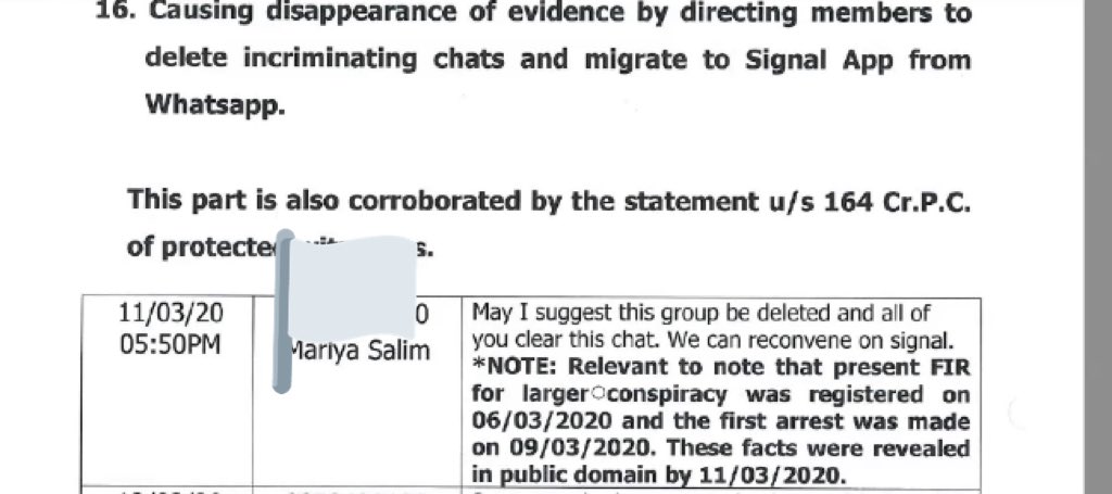 On the 11th of March, after news of the arrest became public, one of the conspirators, Mariya Salim sent a message on the group urging that the group be deleted and everyone must clear their chats. She says that the group could reconvene on signal app.
