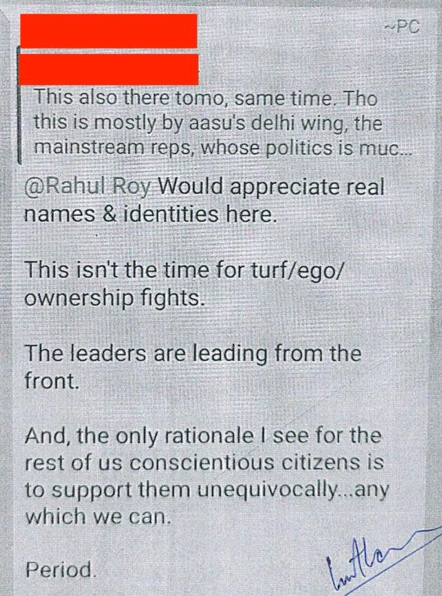 An individual called “PC” said that everyone should identify themselves in the group. This messaged was addressed to Rahul Roy, the pioneer of the ‘Not in my name’ protest and the man who had started the DPSG group.