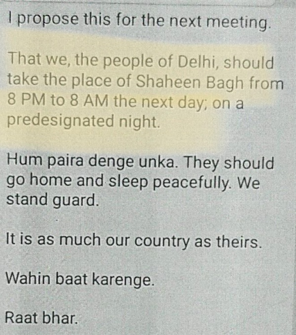 In the same message, “PC” had also suggested taking to the streets and guarding Shaheen Bagh protest sight.