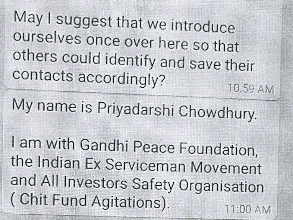 On the 3rd of January, at 1:13 AM, Priyadarshi Chowdhury again sent a message addressing Rahul Roy urging that everyone in the group identify themselves. He suggested giving a 24-hour deadline for everyone to introduce themselves in full, failing which, they should be removed from the group.