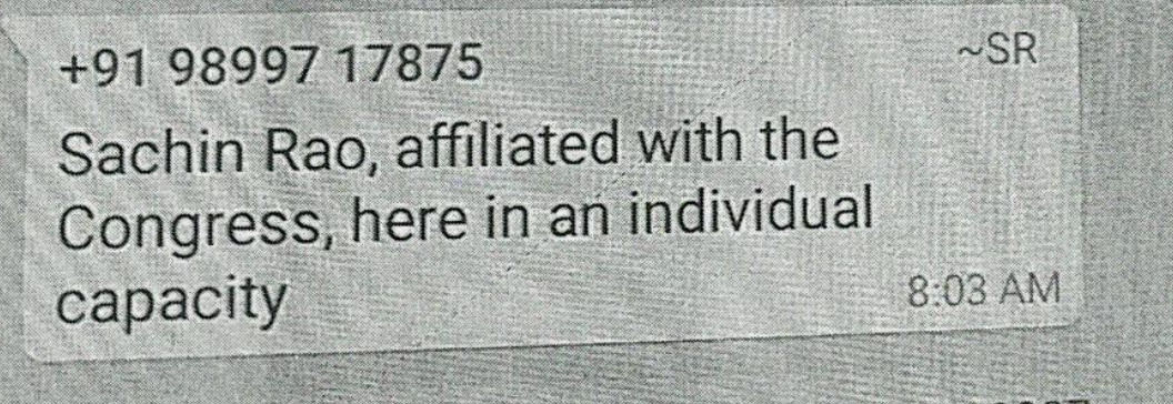 The number 9899717875 belonged to one “Sachin Rao” who said he was affiliated with the Congress.