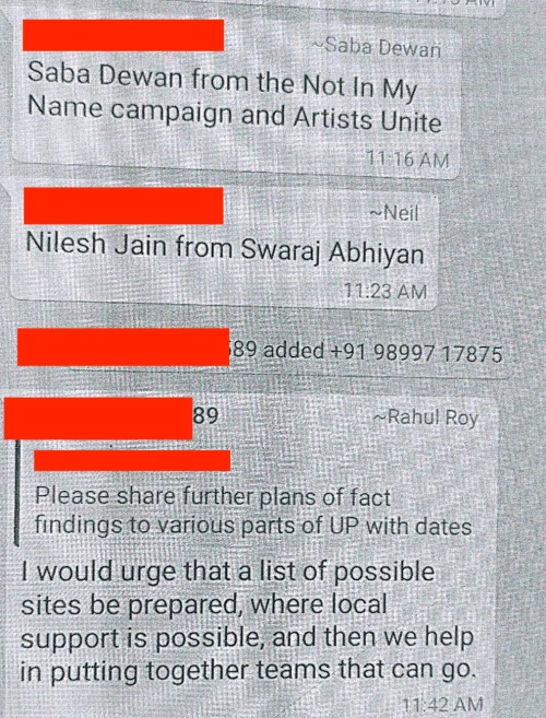 The DPSG group was created right after the 26th December 2019 meeting – in which Harsh Mandar, Yogender Yadav, Umar Khalid, Nadeem Khan, Khalid Saifi, Sahil, Rahul Roy, Saba Dewan, Amrita Johri, Asif Mujtaba and others were present. After the group was created, members were added to the group. On the 29th of December 2019, someone in the group raised a question about those without identity verification being added to the group.
