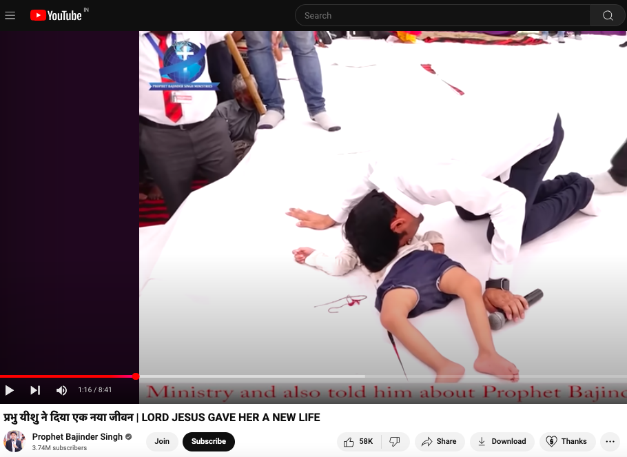 Despite criticism and controversies, Bajinder Singh’s ministry “Prophet Bajinder Singh Ministry” continued to grow, expanding rapidly to multiple branches within and beyond Punjab, capitalising on his self-proclaimed prophetic abilities and faith-healing theatrics. Singh has used social media aggressively to promote his evangelical activities and lure more and more people, particularly the poor, sick, vulnerable or those from marginalised groups. Pastor Bajinder alone has over 3.74 million subscribers on YouTube and over a million followers on Instagram and regularly posts videos demonstrating his self-proclaimed healing powers.