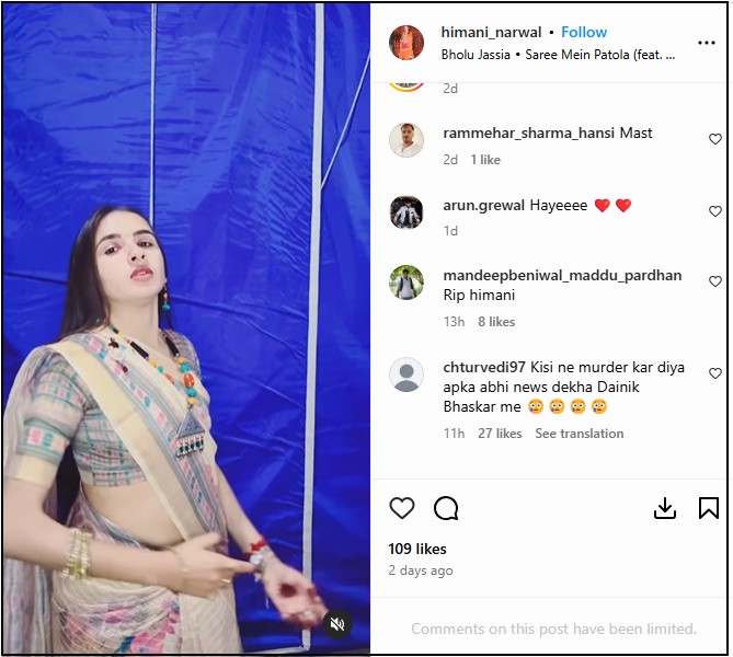When OpIndia checked her Instagram profile, it was found that Himani had mehendi on her hands in the most recent video she had posted on 27th February 2025.
