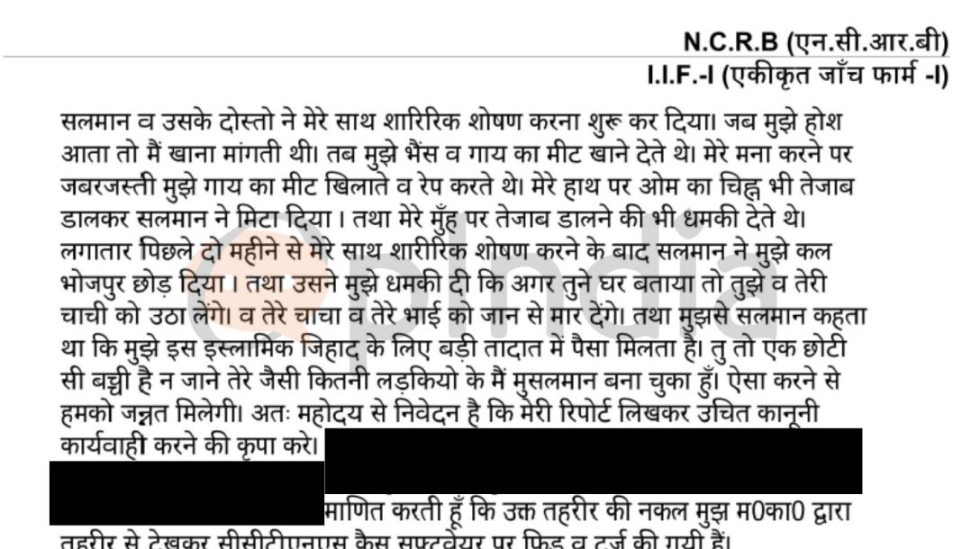 In the FIR accessed by OpIndia, the victim has revealed horrifying details of her abuse by the accused and the alleged nexus to convert Hindu girls to Islam. The victim said that the accused Salman told her that he was receiving funding to carry out Islamic Jihad and convert Hindu girls to Islam. “I (Salman) receive huge funding for carrying out Islamic Jihad. You are just a small girl. I have converted so many girls like you to Islam. We (Muslims) will go to Jannat (heaven) for doing this,” the victim said in the FIR quoting the accused.