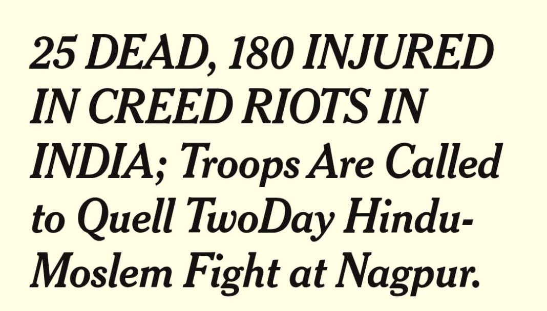 The Muslim ‘template of violence’, which worked in 1923, was finally foiled. A report published by the American newspaper, New York Times, dated 7th September 1927 stated – “The casualties in the Nagpur Hindu-Moslem riots up to this morning total twenty-five killed and 180 injured.“