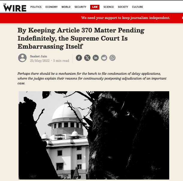 From the Supreme Court ruling on Article 370, which upheld the abrogation of Article 370 and Article 35a, Ram Janmabhoomi land dispute verdict wherein the apex court gave the disputed land to the Hindu side, to any other ruling which did not align with the leftist agenda, The Wire openly criticised the Supreme Court. Not to forget, back in May 2022, The Wire published an article wherein it argued that the Supreme Court is “embarrassing” itself by keeping the pleas challenging the striking down of Article 370 and 35a pending. The Wire accused the Supreme Court of “judicial insensitivity”.
