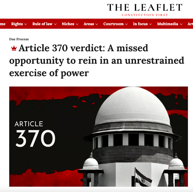 The Leaflet went as far as to question the integrity of the Supreme Court in upholding the abrogation of Article 370 and 35a, insinuating a judicial complicity in supposed executive ‘overreach’. “However, the rationale used by the Supreme Court to reach the conclusions was stretched and did little to enhance confidence in the judicial process,” The Leaflet article published in December 2023 read.