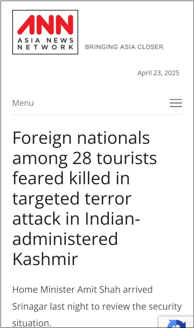 Asia News Network also used “Indian-administered Kashmir” and “gunmen”; however, it did state that it was a terror attack and referred to TRF as a terrorist outfit. Archived link of the Asia News Network report can be checked here.