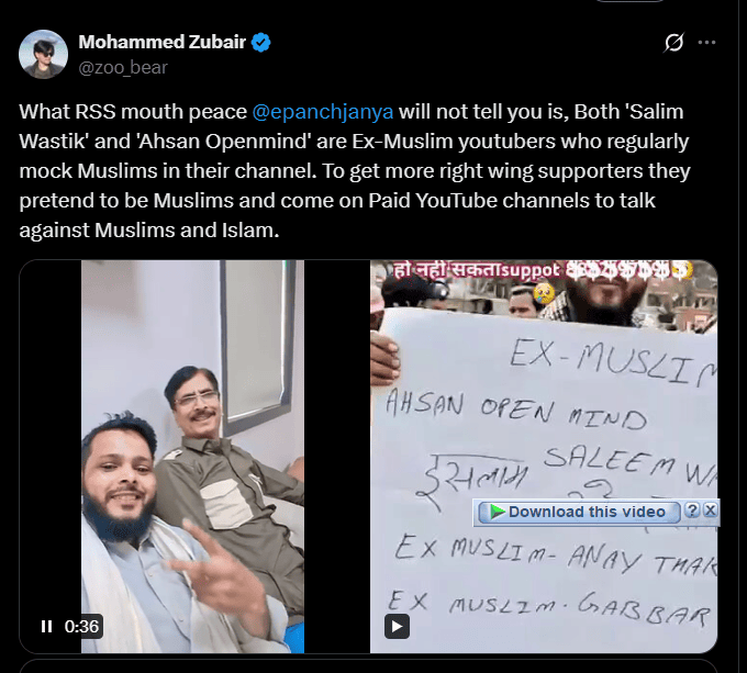 He has 3.5 lakh followers and is not an ex-Muslim, the argument which was used by Mohammed Zubair to de-legitimise the statements of Ehsan. This again shows why Zubair did not ‘fact-check’ Ehsan because the latter was right.