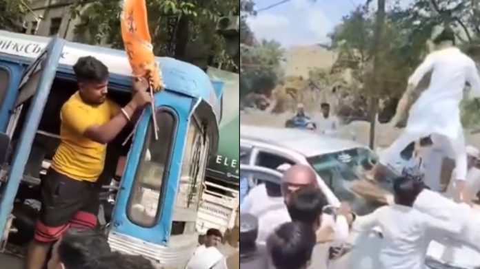 Shockingly, police officers are present at the scene but remain passive observers. Vehicles with Mahadev stickers are being specifically… pic.twitter.com/4ESpg8Xq0o