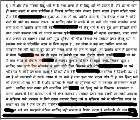 The family of the victim accused Khan of brainwashing the girl and enticing her with promises of better education, a comfortable life, and material benefits if she agreed to convert. It has been further alleged that Khan threatened her parents, stating that the girl would now act only as per his directions and warned them against trying to stop the communication. Fearing that their daughter, who is still a minor, was being influenced into abandoning Hindu practices and embracing Islam, the family approached the police to file a complaint against the doctor.