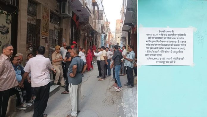 In protest against this attitude of the police and administration, Hindus in lane number-13 of the area put up posters outside their houses, which read, “An illegal mosque is being constructed at house number L-11, lane number 12, Brahmpuri, with the collusion of senior police officers. Upon calling helpline number 112, the police are instead arresting us. Now we are sitting in front of our houses and protesting. The police may shoot us or arrest us by filing false cases. The police and the MCD are forcing us to sell our houses.”