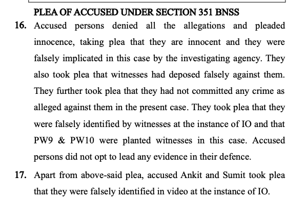 The accused persons pleaded not guilty and asserted that they have been falsely implicated by the investigators. They also argued that the prosecution witnesses in this case have deposed falsely against them. They took plea that they were falsely identified by witnesses at the instance of IO and that PW9 ASI Jahangir & PW10 ASI Vanvir were planted witnesses in this case.